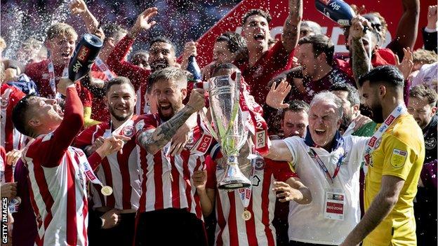 Thomas Frank’s team will play at the highest level for the first time since 1946-47 having eased past a Swansea side who finished with 10 men.