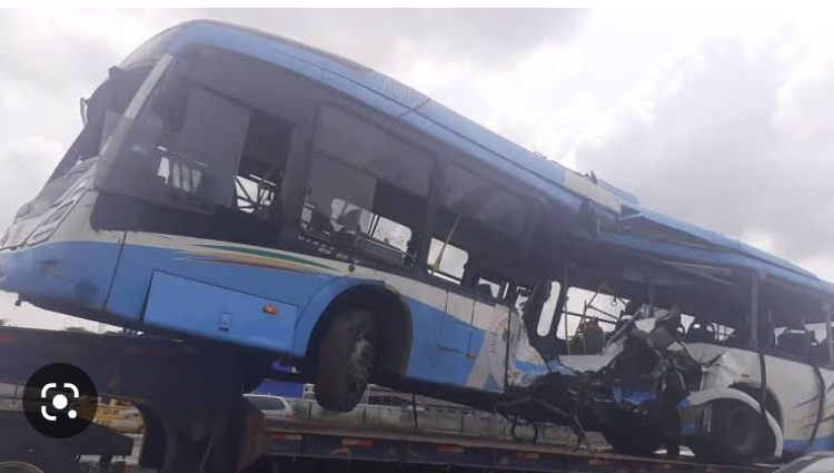 The Lagos State Government staff bus carrying civil servants from Isolo to Alausa had a head-on collision with a train at PWD Bus-Stop, along Agege Motor Road.